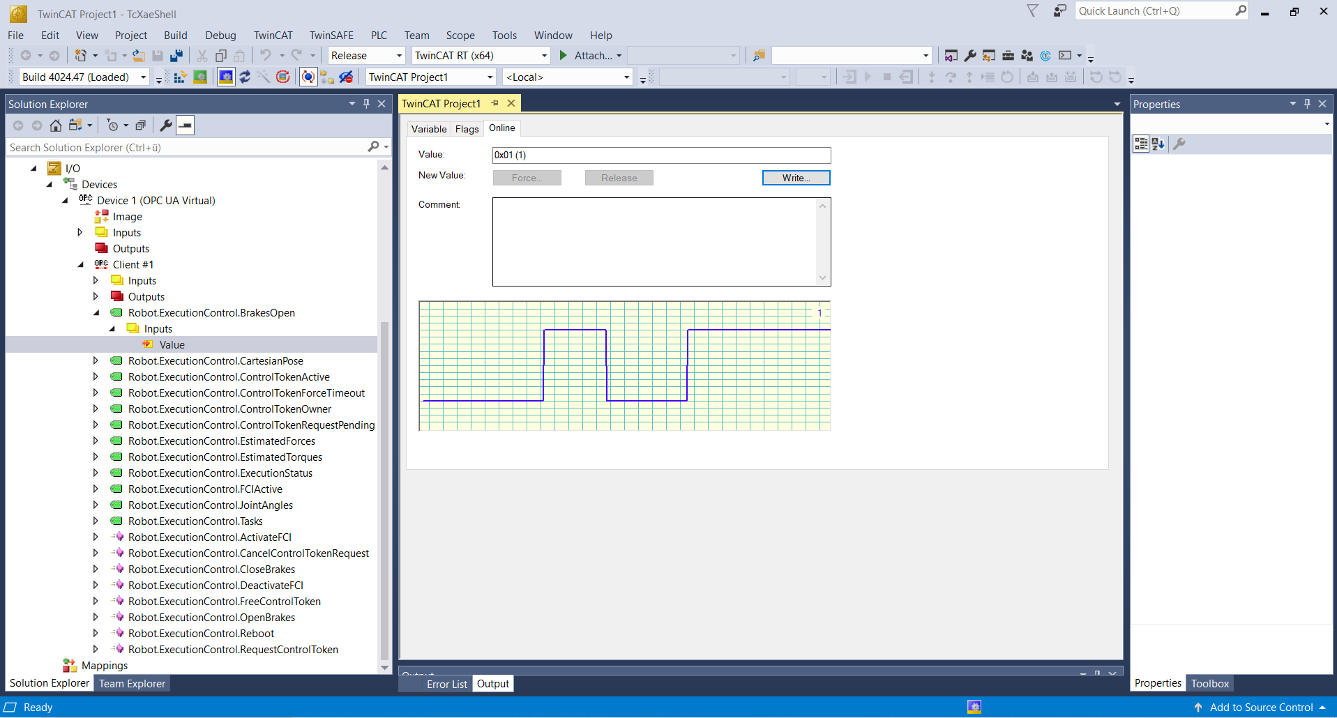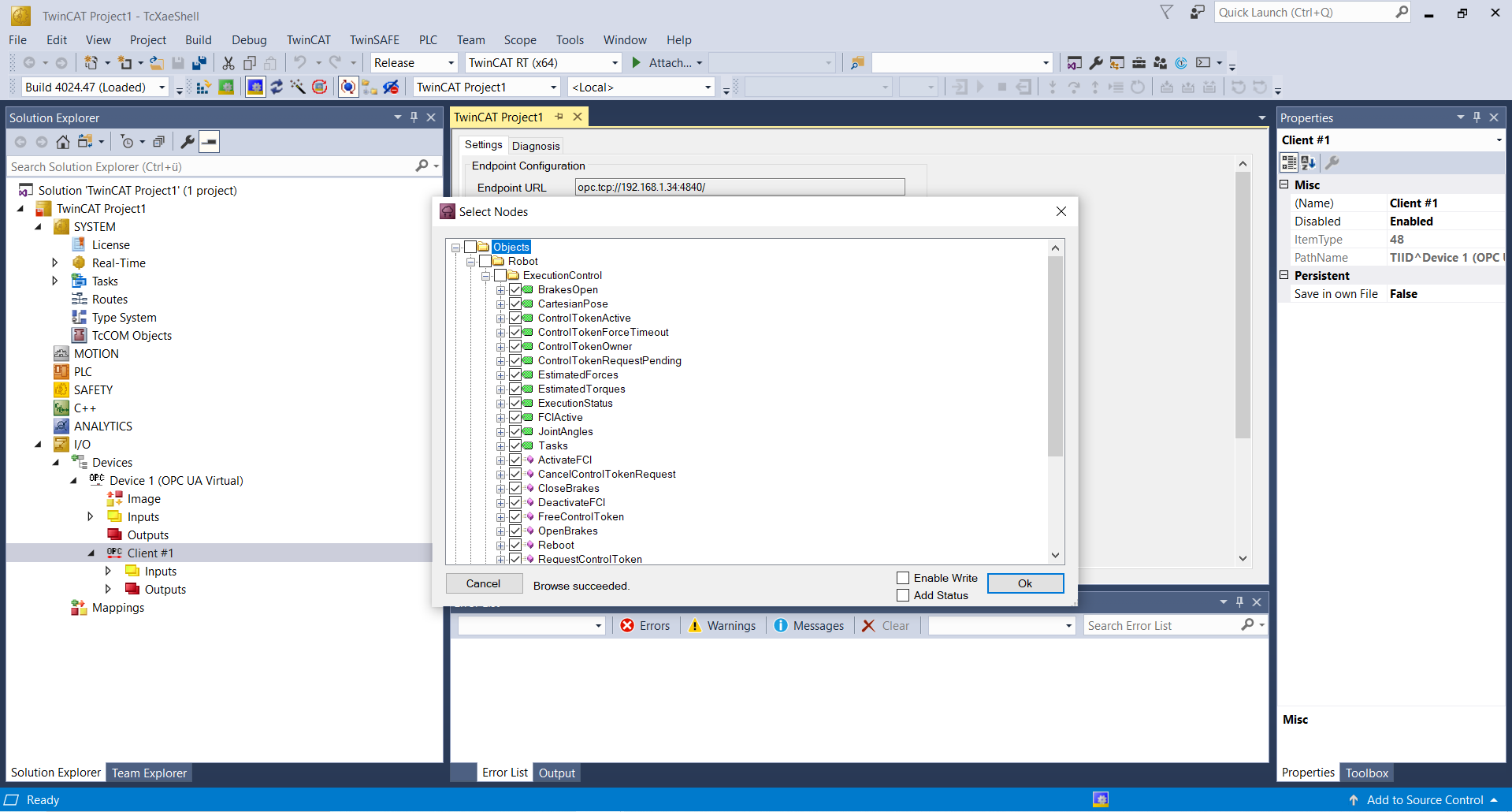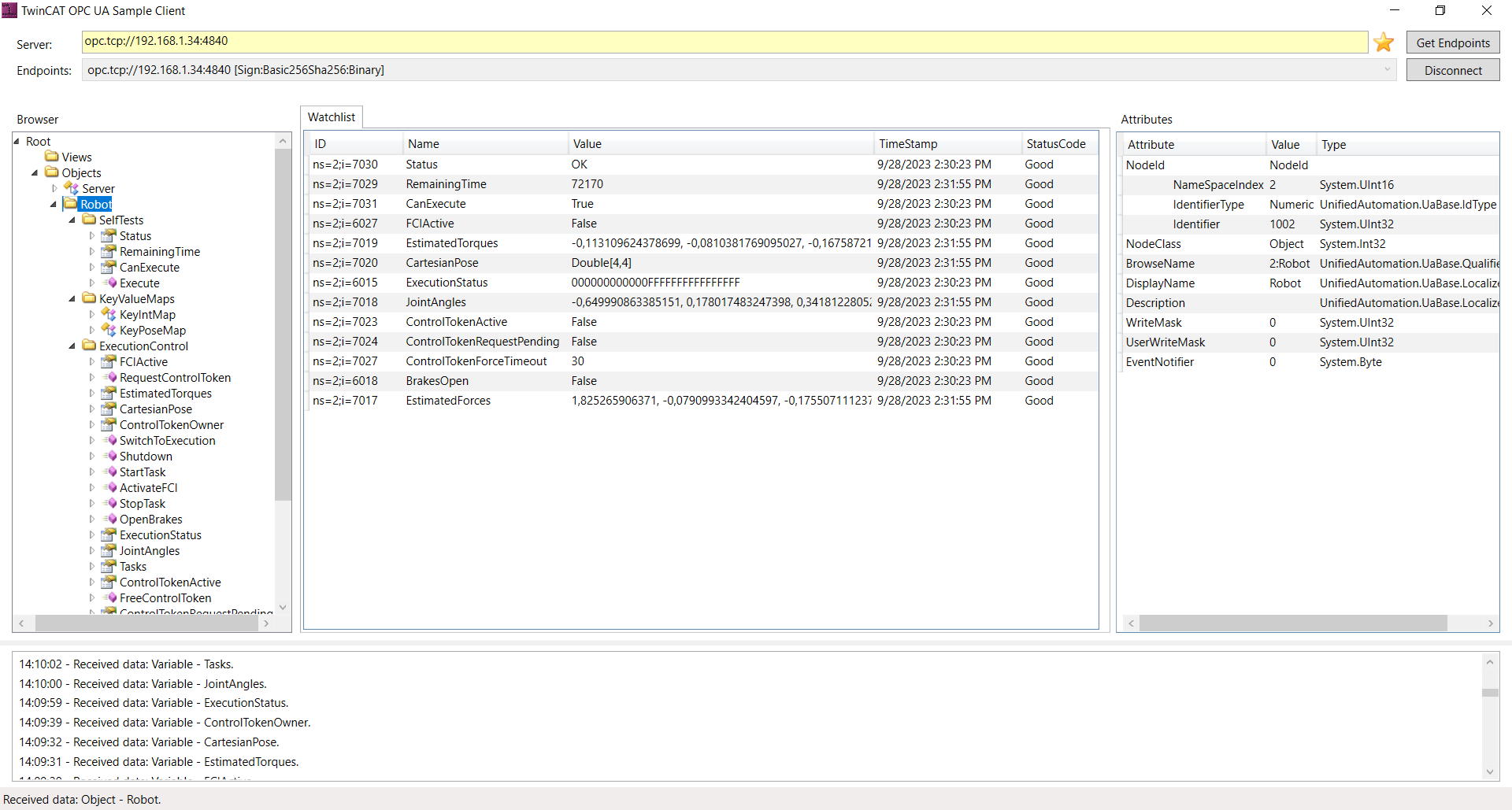 Certain methods provided by the robot’s OPC UA server currently cannot be loaded by the TwinCAT 3 client. Right now this includes the variable